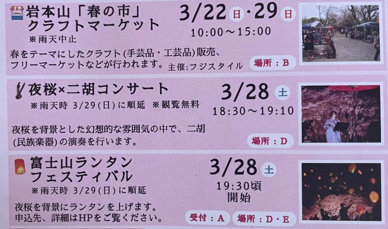 今後のイベントの詳細は絶景★富士山まるごと岩本山の公式HPをご覧ください。春の市は翌週の3月29日にも開催されます。