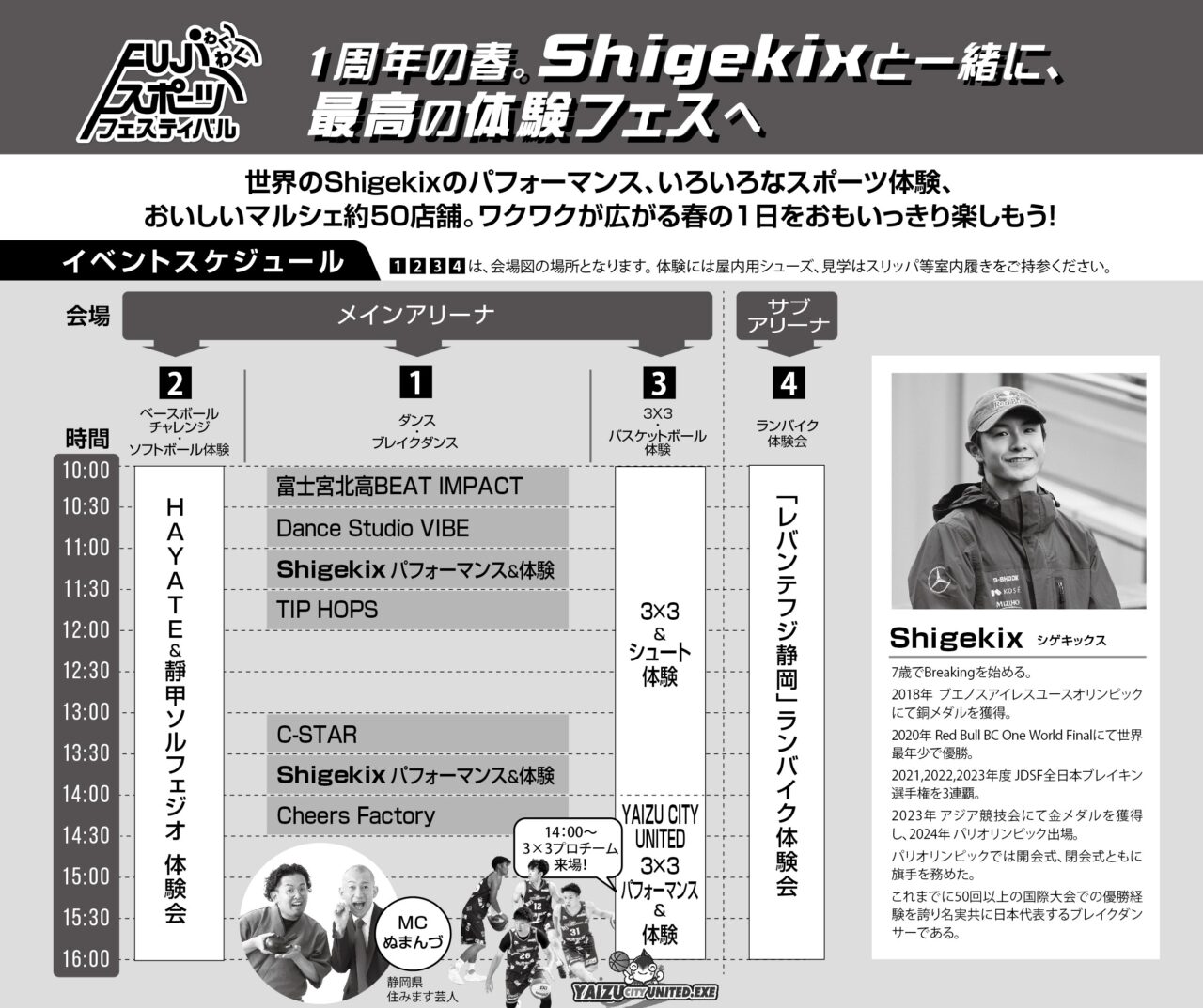 世界で活躍するブレイクダンサー「Shigekix」のスペシャルパフォーマンスをはじめ、ダンス・野球・ソフトボール・バスケットボールなど、さまざまなスポーツを体験できるイベントです。