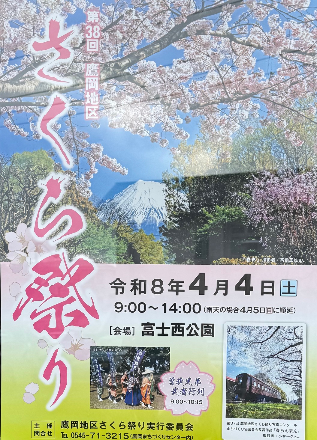 市内の桜の名所のひとつでもある「富士西公園」を会場に、2026年4月4日(土)9:00~14:00「第38回鷹岡地区さくら祭り」が開催されます。