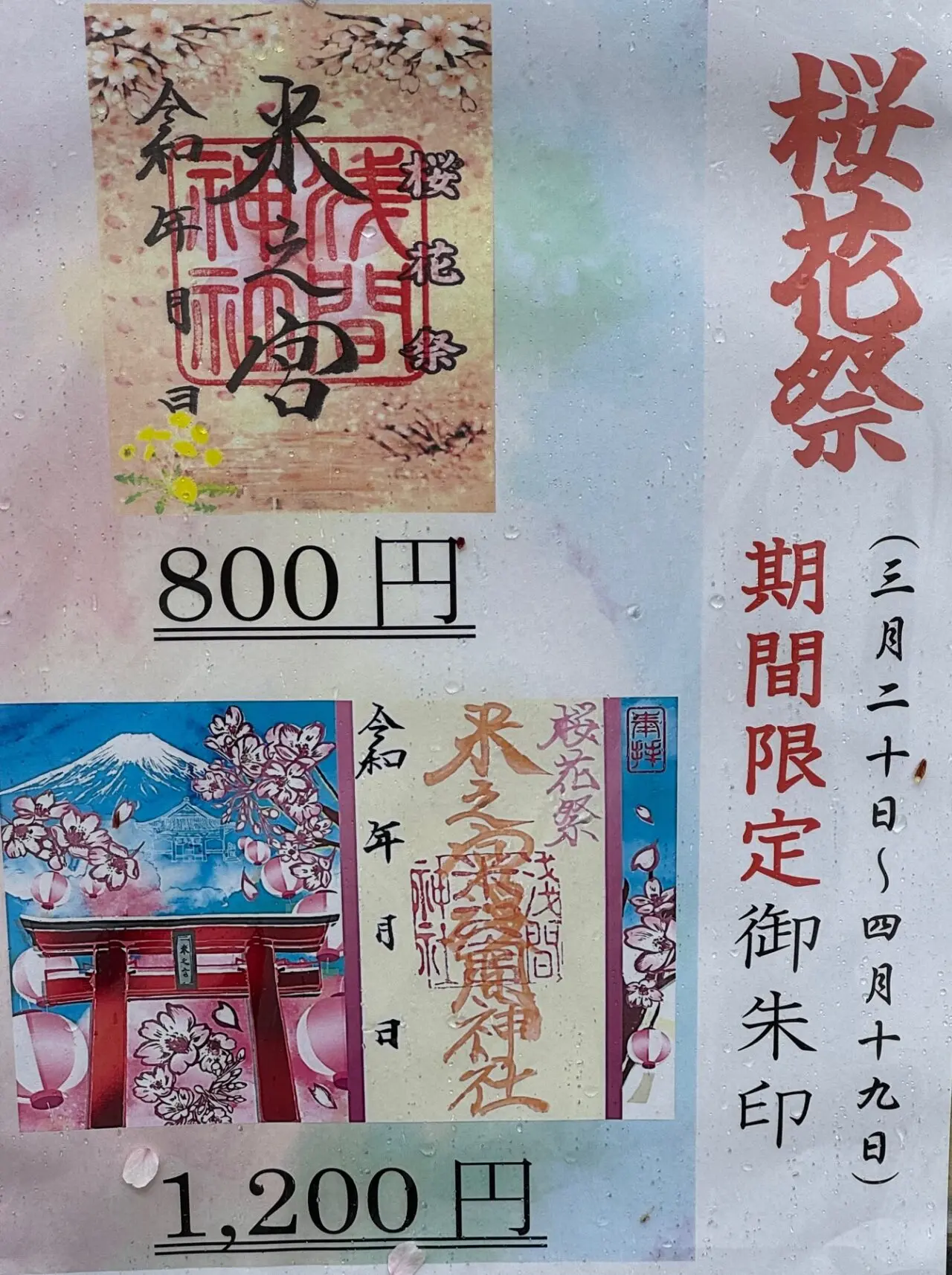 3月20日~4月19日までは期間限定御朱印が頒布されています。