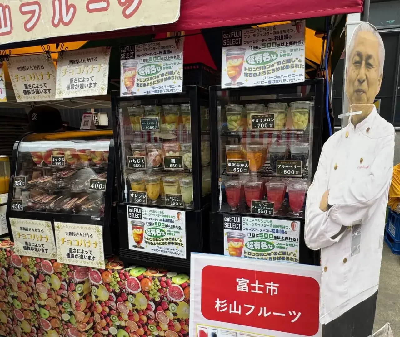 「杉山フルーツ」チョコバナナ、生フルーツゼリー