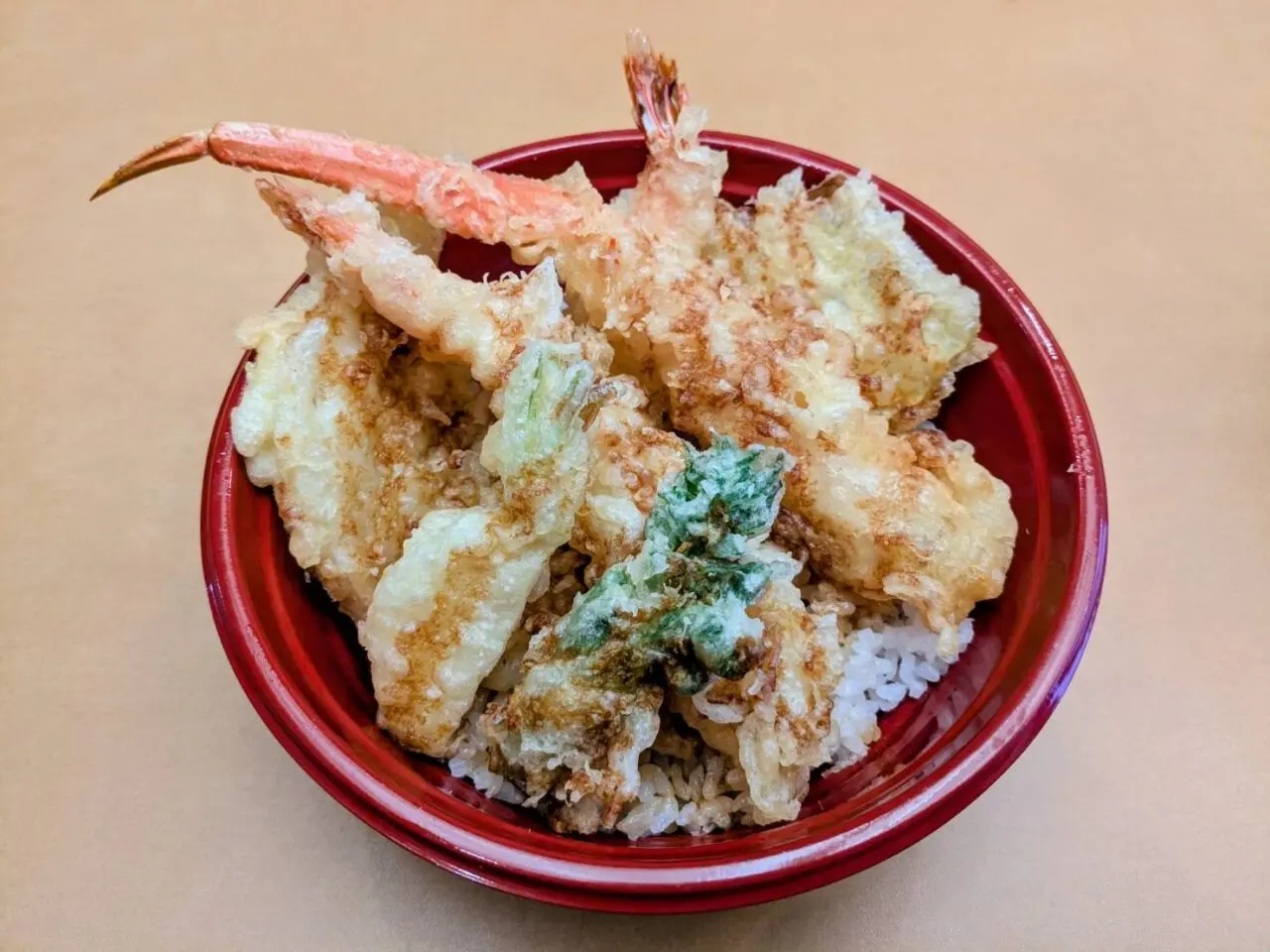 ずわい1本、海老2本と野菜のもりもりの天丼