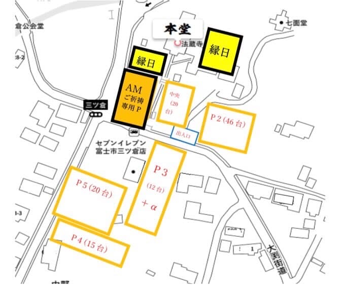 法蔵寺の境内の駐車場とセブン-イレブン富士市三ッ倉店の周辺の駐車場になります。