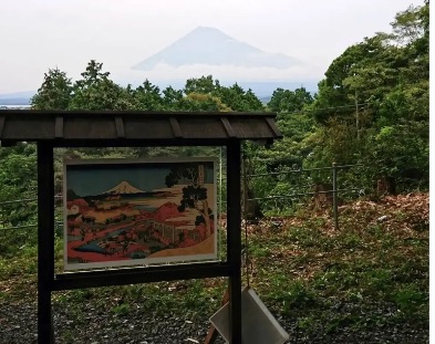 山上の高台から見られる景観は、葛飾北斎の浮世絵「冨嶽三十六景」の一つ「駿州片倉茶園ノ不二」の描写地との伝承があります。是非、高台に登ってみてくださいね!