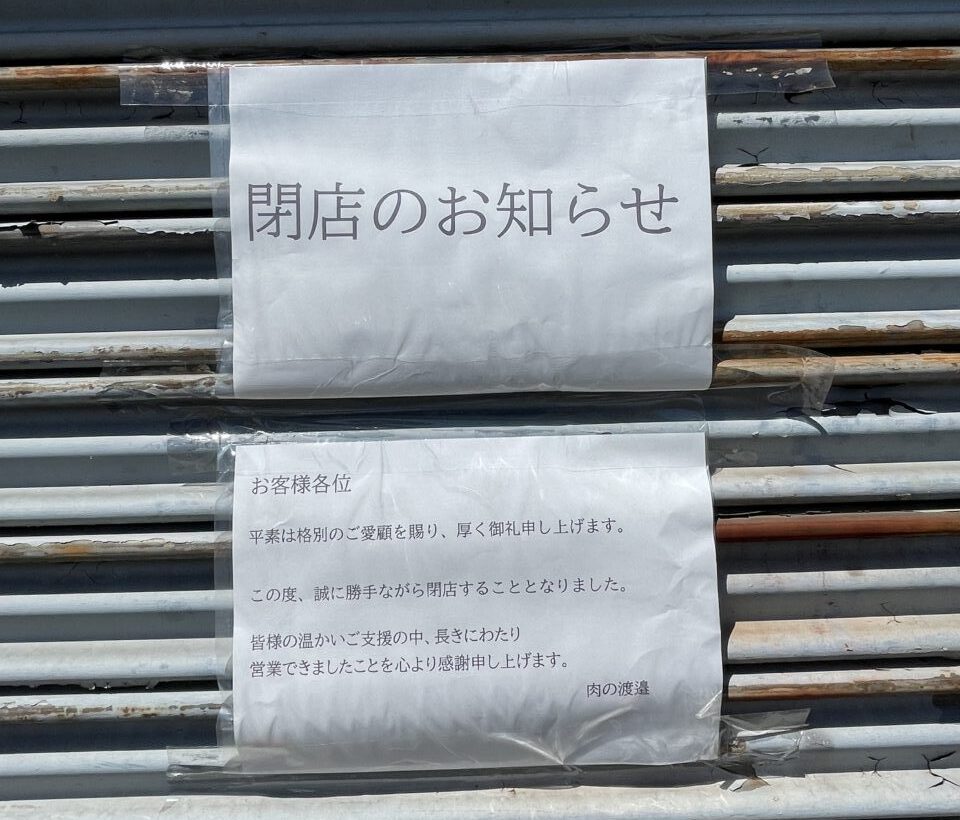 【富士市】馬肉専門店の肉の渡邉が閉店してしまいました。