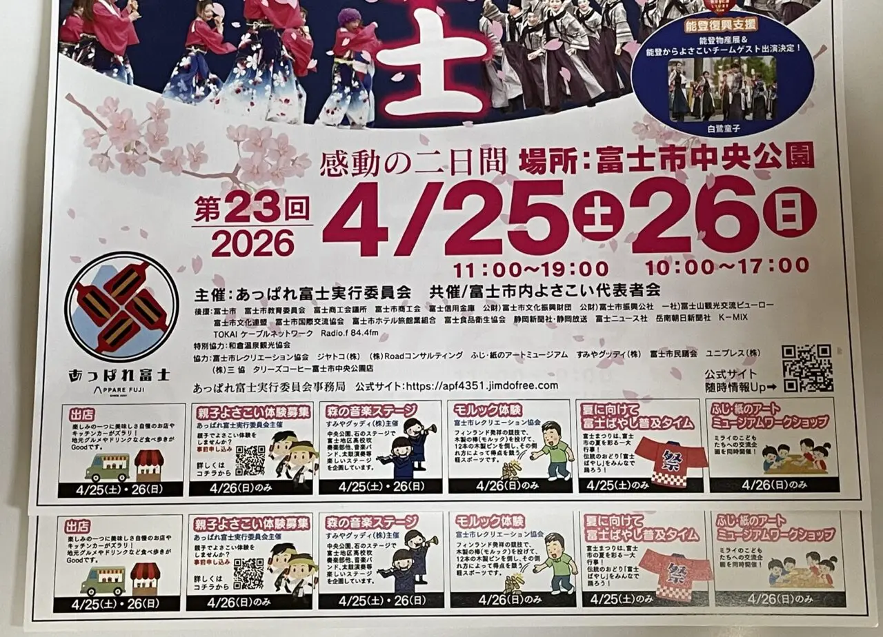 2026年4月25日(土)26日(日)富士市中央公園を会場に「第23回あっぱれ富士」が開催されます。